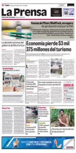 [email protected] Sermedic Panamá esta - blecióuncentrodehisopado enAmadorsintenerlaapro - bación del Consejo Técnico deSaludparahacerlasprue - basdelaboratorio. Sermedic,de acuerdocon su aviso de operación, tiene como propietaria aAna Lo - rena Chang, quien hasta el 19de agostofungió comoje - faregionaldeSaludPública. La ResoluciónNo. 274 de 3demayode2021delMinsa estableceque para habilitar uncentrodehisopado sede - be presentar unanota con el nombre del representante legal, copia de la cédulade identidadpersonal, avisode operación,entreotrosdatos. La autorizaciónde estos centrosrecaeenlaDirección GeneraldeSaluddelMinsa. VEA4A Ladecisiónextremadel gobiernodeNitoCortizo ANÁLISIS Al dictar la Resolución 71 del4deagostode2021 –que declaró de “acceso restrin - gido”las actas,notas yarchi - vosdelPresidenteyVicepre - sidentede laRepública ydel Consejo de Gabinete– , el Gobierno pudomantener el accesopúblico delos docu - mentosquenoserefiriesena temas sensibles,negociacio - nes internacionales o asun- tos de seguridad del Estado, como lo estipula expresa - mente la Ley 6 de 2002, de transparencia. Sinembargo,másbienop - tó por ocultarlotodo, talco - mo lo hanhecho gobiernos anteriores, entreellos eldel también perredista Martín Torrijos (2004-2009),que al igual queéste selló lasac - taspor10años. VEA6A Tribunal de CuentasyDGI, enfrentadospor sentencias CONTROVERSIA El Tribunal de Cuentas impulsa cambios ala Ley 67 de 2008,que creóesa juris - dicción, pues asegura que la DirecciónGeneral deIngre - so (DGI) no ejecuta las sen - tencias.LaDGIlorechaza. VEA2A Hoy por hoy Elturismo,unodelospilares denuestraeconomía,hasu - fridopérdidasquesecalcu - lanenmásde$3milmillo- nes,productodeldañocola - teralproducidoporlapan- demiadelaCovid-19.Pero, además,elGobiernohacon - tribuidoenormementeen retrasarsurecuperación.En muchoscasos,lapolíticadel Gobiernoencuantoaeste sectorhasidoerrática,im- provisadaydiscrecional.El turismoenPanamáhasido delospeortratadosporlas autoridades.Sondemasia- dosloscasosenlosqueex - tranjerosquevinierondevi- sitaalpaíssequejanrepeti - damentedemalostratos, abusos,delpreciodelas pruebasenelaeropuerto–y hastaparairaTaboga–,de lacalidaddeloshoteles dondelosobliganaquedar- se,delapocaseriedaddelos laboratorioscontratados porelGobiernoparahacer laspruebas,deladescorte - sía,delafaltadeinforma- ción;denormativasconfu - sasyelautoritarismoenla aplicacióndelasreglas.En fin,sonmuchoslosperjudi - cadosyelloseguramente traeráconsecuenciasparael turismo,golpeadoporloes - trictoquehansidolascua - rentenaslocales,sincontar lasinternacionales.¿Deque sirvenlosincentivospara construirobrasparaeltu - rismosinohabráturistas? Esteeselpaísdeloabsurdo. Vivir+ Finaliza laXVII ediciónde la feriadel libro 8B Panorama Anati analiza titular lotes en áreaprotegida dePortobelo 2A Vivir+ ¿Cómo las carreteras afectan a la vida silvestre? 7B Economía CCIAP ‘aplaude’ llamadode Meducapara vueltaaclases 3B Vacuna de Pfizer/BioNTech, en espera de aprobación total por la FDA La Administración de Alimentos y Medicamentos de Estados Unidos (FDA, por sus siglas en inglés) tiene planeado dar hoy la aprobación total a la vacuna anticovid de Pfizer/BioNTech, anunció el diario ‘The New York Times’, citando fuentes cercanas a la agencia. VEA 4A Estados Unidos Tormenta Henri, en tierra Despuésdeque la tormenta tropical Henri tocó tierraayer en lacostaestedeEstadosUnidos, servicios de emergencia comenzaron a registrar incidencias endistintos estados, como enHelmetta, NuevaJersey, donde el fenómeno provocó una inundación repentina. Además, se han reportado cortes eléctricos, lluvias récord y vuelos cancelados. VEA6A AFP COVID-19 Datos hasta el 22.08.2021 ESTADÍSTICAS EN PANAMÁ 614 Casos positivos nuevos 5 Fallecidos en el día Infografía: LP - Fuente: Minsa 4,028,510 Dosis de vacunas aplicadas