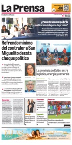 1A La Prensa Panamá, viernes 23 de enero de 2026 El medio libre de Panamá 75¢ Viernes 23 de enero de 2026 - Año 45 - Nº 15270 Hoy por hoy El desempleo dejó de ser una estadística de doble dígito para convertirse en una urgencia nacional. Los foros Visión de La Prensa en Chiriquí, Coclé y Colón lo confirmaron sin rodeos: las provincias siguen esperando decisiones, mientras la economía permanece excesivamente concentrada en el eje interoceánico, que genera el 85% de la actividad, frente a un rezagado 15% en el resto del país. En Coclé, el Conep subrayó la cifra: unas 100,000 personas están desempleadas o sobreviven en la informalidad. Situaciones similares se repiten en Colón y otras provincias. Detrás de esos números hay hogares sin ingresos estables y economías locales sin capacidad de reacción. La respuesta no admite ambigüedades: se requiere inversión pública y privada, pero también confianza, reglas claras y transparencia. Sin ese entorno, el capital simplemente no llega. Descentralizar la inversión no es un gesto político, es una necesidad económica. Impulsar a las pequeñas y medianas empresas es parte de la solución. Sin empleo no hay consumo; sin consumo no hay crecimiento. Y sin decisiones, la espera se prolonga. Ellas.pa Lorna Cepeda y Natalia Ramírez llegan ‘Muertas de la risa’ 5B Londoño se queda en la Universidad Católica de Ecuador 8A Deportes Panorama Empieza la carrera por el cargo de subcontralor 3A Economía IICA apoya etanol en matriz de combustibles de Panamá 2B Refrendo mínimo del contralor a San Miguelito desata choque político La resolución del contralor Anel Flores redujo de $50,000 a $1,000 el límite de refrendo en San Miguelito, recortando de forma drástica la capacidad operativa de sus fiscalizadores. Juan Diego Vásquez acusa a la Contraloría de aplicar un trato selectivo y usar el control fiscal como presión política contra San Miguelito y su alcaldesa, Irma Hernández. La controversia llegó al pleno de la Asamblea, donde el diputado Roberto Zúñiga acusó al contralor de actuar con mala fe y doble rasero. VEA 2A Óscar Santibáñez, de AES Panamá, Maru Gálvez de Cobre Panamá, Sheren Chatlani, gerente de Panafoto Zona Libre y Yolanda Sandoval (moderadora). Anel Asprilla Yolanda Sandoval [email protected] Colón enfrenta el reto de convertir su valor estratégico en desarrollo que alcance a su gente, una tarea que, según expertos y empresarios reunidos ayer en el foro Visión Colón 2026 de La Prensa, pasa por atraer inversión privada, mejorar la planificación estatal y cerrar brechas de desigualdad. Los expositores coincidieron en que sectores como logística, turismo y energía pueden impulsar empleo y crecimiento. Igualmente, la estrategia de convertir a Colón en un hub logístico y energético se sustenta en la modernización de la Zona Libre y el desarrollo de infraestructura vinculada al Canal y a la integración energética. Los empresarios destacaron inversiones clave coVISIÓN COLÓN 2026 La provincia de Colón: entre logística, energía y comercio Irma Hernández Archivo Anel Flores Archivo mo las de AES Panamá, la mina de Cobre Panamá y el potencial de proyectos de abastecimiento de combustible a buques y el uso de baterías para complementar energías renovables. Desde la Zona Libre se puede impulsar una transformación digital que permita adoptar modelos tipo “Amazon” o “Temu” regional, optimizar la logística y consolidar centros de acopio para competir en el comercio global. VEA 1B Y 3B ¿Puede Francolini pedir la sustitución de la pena de prisión? Riccardo Francolini pactó una pena de 30 meses de prisión y una multa de $1.9 millones en el caso Odebrecht. La posible sustitución de la medida de ir a la cárcel dependerá de si su condena previa en Blue Apple queda en firme. VEA 4A
