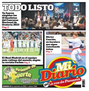DOMINGO 24 de septiembre de 2023 I número 7446 Héctor Cención, un karateca que sigue cosechando éxitos Pág. 7 El Real Madrid es el equipo más valioso del mundo, según la revista Forbes Pág. 5 35¢ CHEQUÉALA PARA QUE GANES EN EL SORTEO. Pág. 2 TODO LISTO Ya fueron elegidos los 15 finalistas del Concurso Nacional de Oratoria 2023 Pág. 2