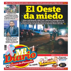 ¡Preparando el camino al mes de la patria! YA VIENE... MARTES 8 de octubre de 2024 I número 7761 CON EL APOYO DE Ahora podrán conseguir insulina en las farmacias de los centros de salud y hospitales del Minsa. Pág. 4 ¡Dios mío! Madre desalmada le daba cocaína a su hija de 11 meses para que la dejara dormir. Pág. 3 35¢ El Oeste da miedo Jaime Lam Simpson, alias ‘Tata’, disfrutó el domingo de una última birria antes de ser asesinado de múltiples disparos en La Chorrera. Ya van 64 asesinatos en Panamá Oeste este año. Pág. 2 Capturan a tres sospechosos vinculados a un doble homicidio y tentativa en el vertedero de Cerro Patacón. Pág. 2 Jaime Díaz, director del Ifarhu, dice que la institución está en quiebra. ¿Y ahora qué pasará con las becas? Pág. 7